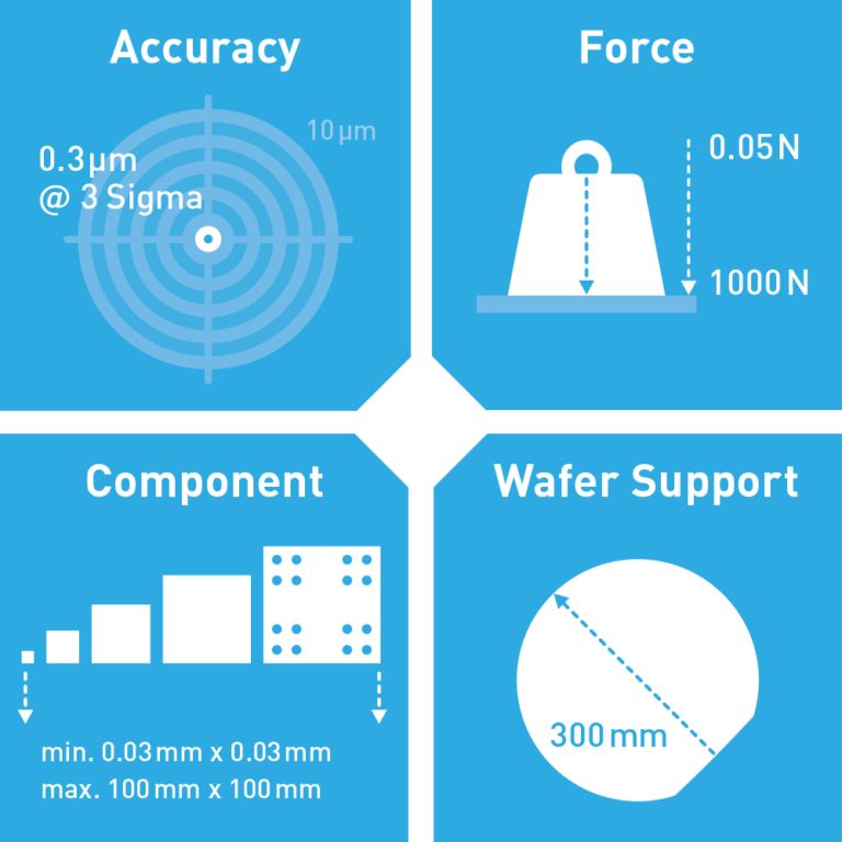 FINEPLACER® femto 2 は、実装精度 0.3 µm @ 3σを実現した、全自動高精度ダイボンディング装置です。量産対応及び試作開発において、他に類を見ないパフォーマンスを提供します。